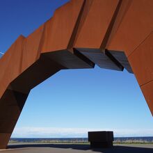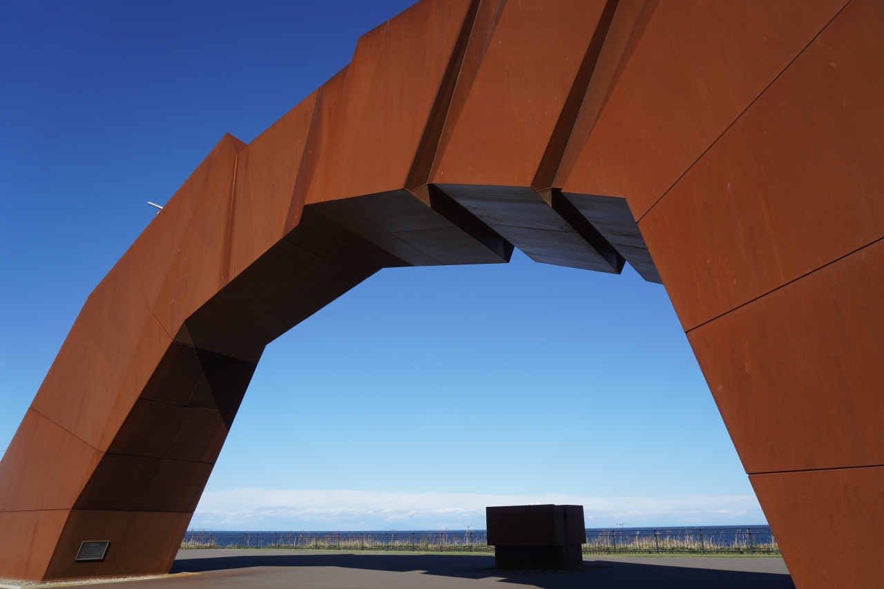 北方領土問題啓発モニュメントは、望郷の岬公園の海に面した奥の方。事前に写真も見ていましたが、実際に近づいて見上げると、事前のイメージと違って、本当に巨大。北方領土返還の実現に向けた日本国民の願いはこんなに強いんだぞという気持ちがひしひしと伝わってきます。すばらしいモニュメントだと思います。