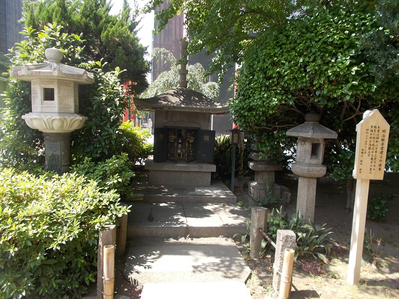 この明治観音堂は明治座がある日本橋浜町にあります。毎時座の南側の大通りの中央緑地帯にあります。この観音堂は小さな祠があります。その祠に立札があります。昭和20年3月で被災した人々へのために安置されたものです。めでたないですがその悲劇を後世に伝えるものです。