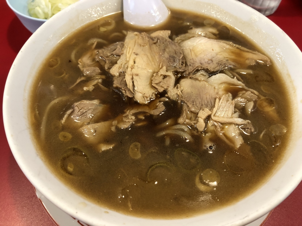 イチオシメニューの中華そばは、京都の新福菜館の味に惚れ込んだ店主が、その製法を伝授してもらい秋田の人にも合う味に変えたとのこと。麺は細麺で少し硬めに茹でてあるようです。スープは濃口醤油ダレに鶏や豚、野菜から取ったスープが合わせてあるもので、かなり色は濃い。しかし、この濃厚なスープと麺の相性は抜群で、見た目ほど濃くはないので、あっさりといただけます。また、普段は入れ放題(コロナ禍なので、別皿で提供。おかわり可能)のネギがスープとの相性が良く、これがまた美味。もう一つの人気メニューのヤキメシ黄身のせ。ラーメンと同じ濃口醤油ダレで味付けをしているので、真っ黒な炒飯で、これに黄身を潰して和えながら食べると、とてもまろやかになります。