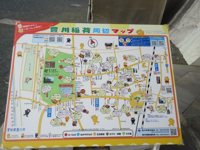 豊川稲荷に行きましたが、駅方面から稲荷までの間など、たくさんのお店が並んでいる商店街が連なっていました。豊川稲荷らしくきつねの絵とかオブジェとかがあったり、きつねのお面とかグッズがうっていたり、おいなりさんのお店があったりと、観光でも楽しい商店街でした。