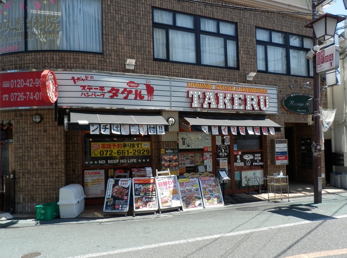 高槻界隈ではステーキハウスとしてはそれなりに知られた人気店の「1ポンドのステーキハンバーグTAKERU・高槻店」は、阪急高槻市駅南口から徒歩で数分、派手な看板なので迷わずに行ける利便性が好く、昼間のランチメニューがあるので気軽に利用出来るのも特徴です。