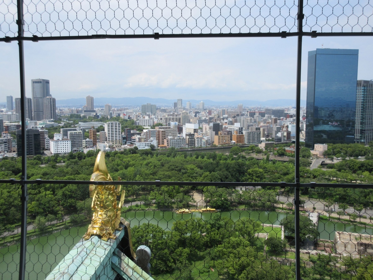 まずエレベーターで行きますが、てっぺんの天守閣には階段で、その後も階段で下に降りて行きます。