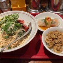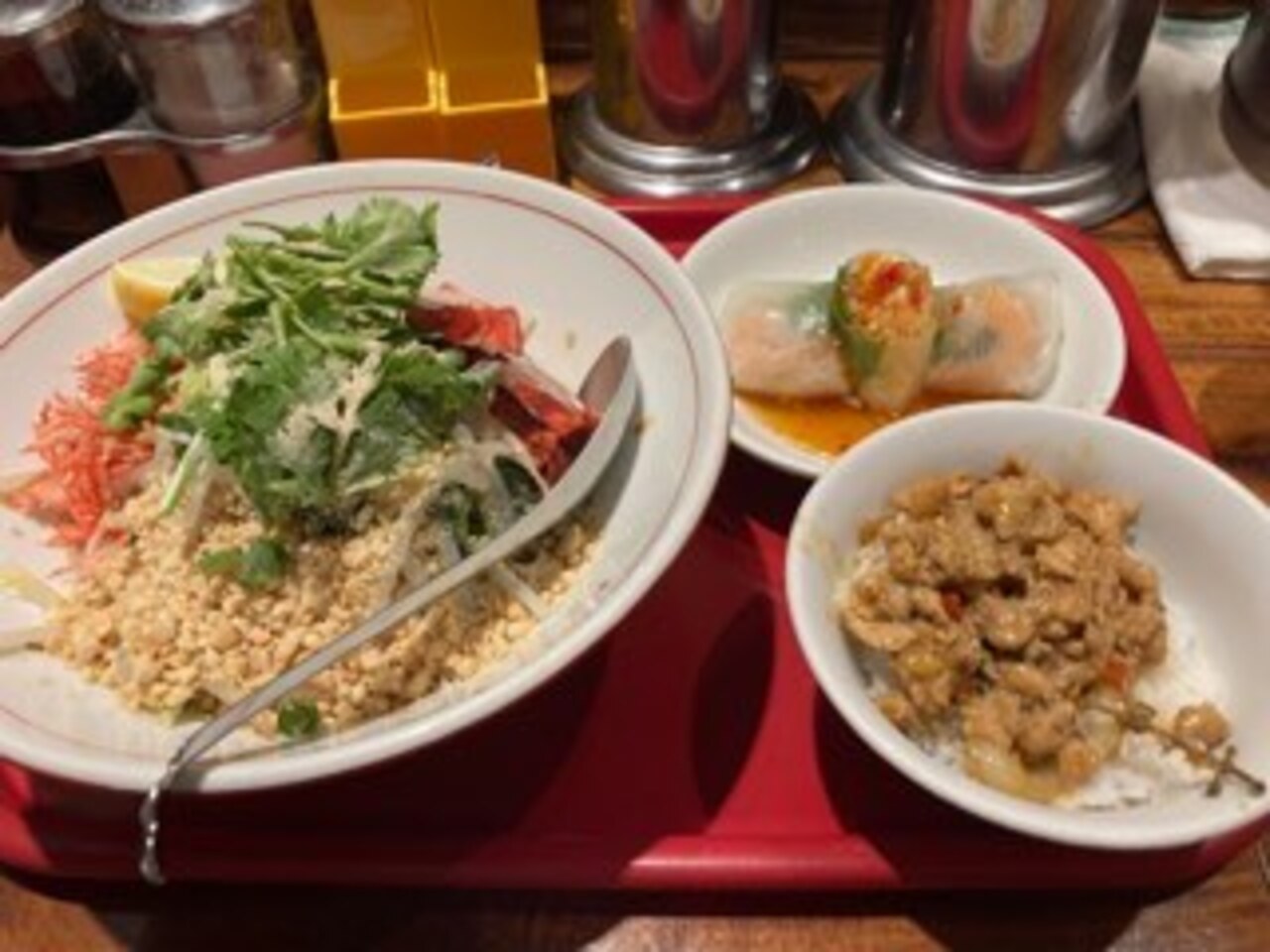 タイの汁なし麺とガパオ、生春巻のセットを食べましたが、ボリュームがあって良いです。
