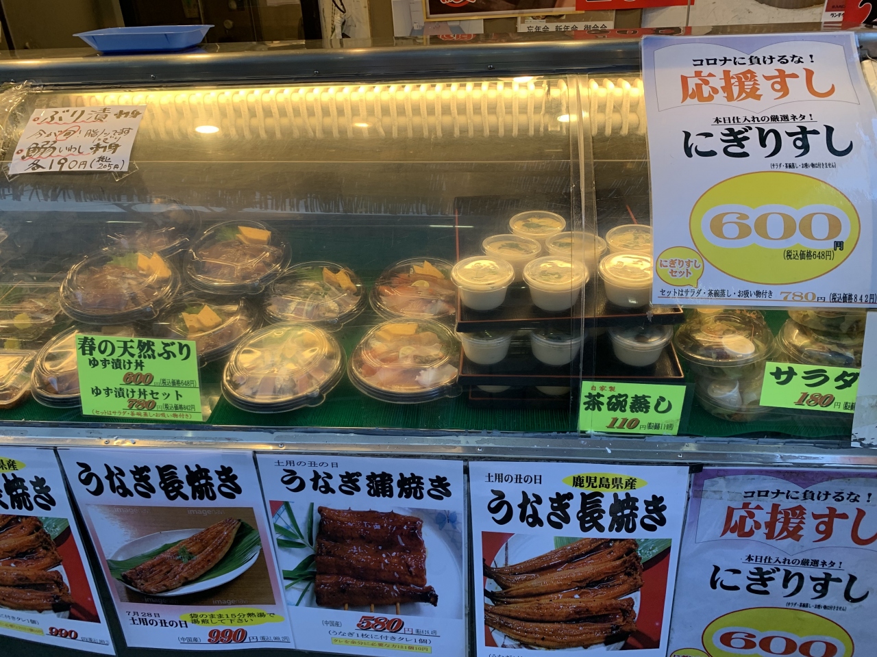 『コロナに負けるな!応援すし 本日仕入れの厳選ネタ「にぎりすし」600円』