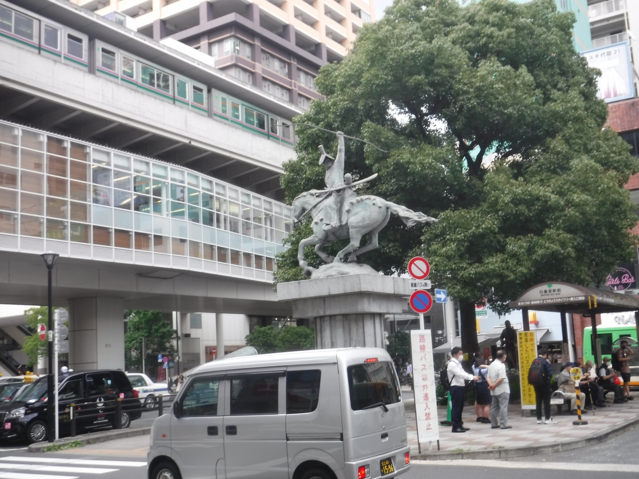 日暮里駅の前に立っている、太田道灌の像。