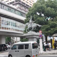 像は、片手をあげて、勇ましく馬に乗っている。