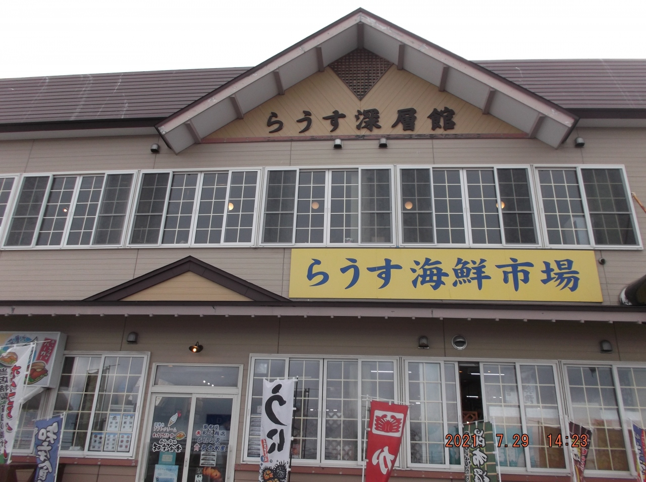 ここに着いたのが14時過ぎてしまって、ここで腹いっぱい食べるとホテルの夕食に支障があると考え、全員軽いものにしました。私は「鮭とイクラの親子おにぎり」=450円を、これが大きくてコンビニのおにぎりの倍の大きさでした。半分孫に分けて食べてもらいました。