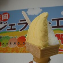 笠岡ベイファームのヒマワリ畑を見に行った際に少し歩いた場所にある笠岡ジェラート工房に立ち寄りました。ベイファームに行った時には何となく食べたくなるジェラート。先にシングルかダブル、カップかコーンなど食券を買ってから好きなアイスを注文します。