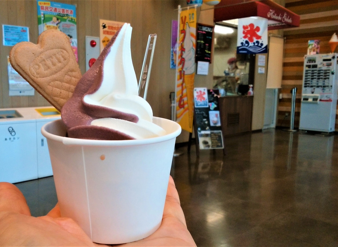 ソフトは常陸太田産ブルーベリーを使ったものと濃厚牛乳、そしてミックスの3種類。