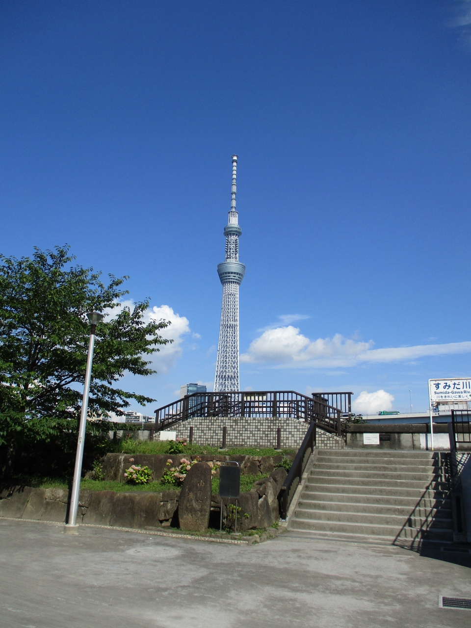 浅草から隅田川の土手沿いに散歩をしていた特に、小さな石碑と案内板がありました。山の宿の渡し跡と刻まれていて、昔はここから対岸へ渡し船があった跡のようです。今はたくさん橋が出来ていて便利ですが、当時は大きな隅田川を渡るための、貴重な交通手段だったと思いました。