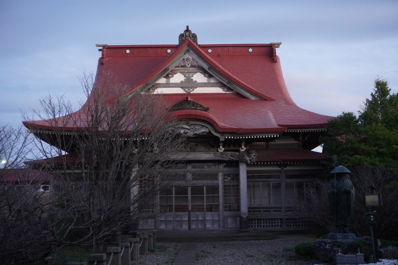 清隆寺は、根室市街にある真言宗智山派の寺。本堂は赤い屋根の堂々とした構え。