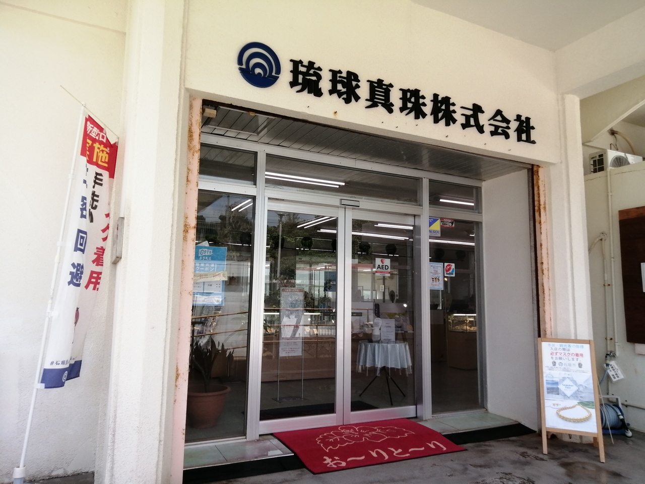 川平湾公園内の遊歩道を南に進めばたどり着きます。川平真珠の直売店です。ちょっとお店の中を覗いて見ましたが客はおらず閑散。手頃なお土産類もあるとは思いますがモノがモノなだけに、明らかに冷やかしとわかるおっさんが1人で入るのはためらわれ、入店は断念しました。