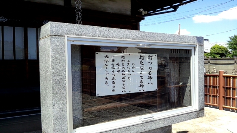 「打つのも怖い、打たなくても怖い。しかし人生において、何かを決めなくてはならないときには、賭けに出るのは必要なことである」というような言葉が本堂の前の掲示板に書いてありました。