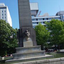 柱には険しい表情の彫刻が彫られています。勇ましさ、力強さも感じられる石碑となっています。