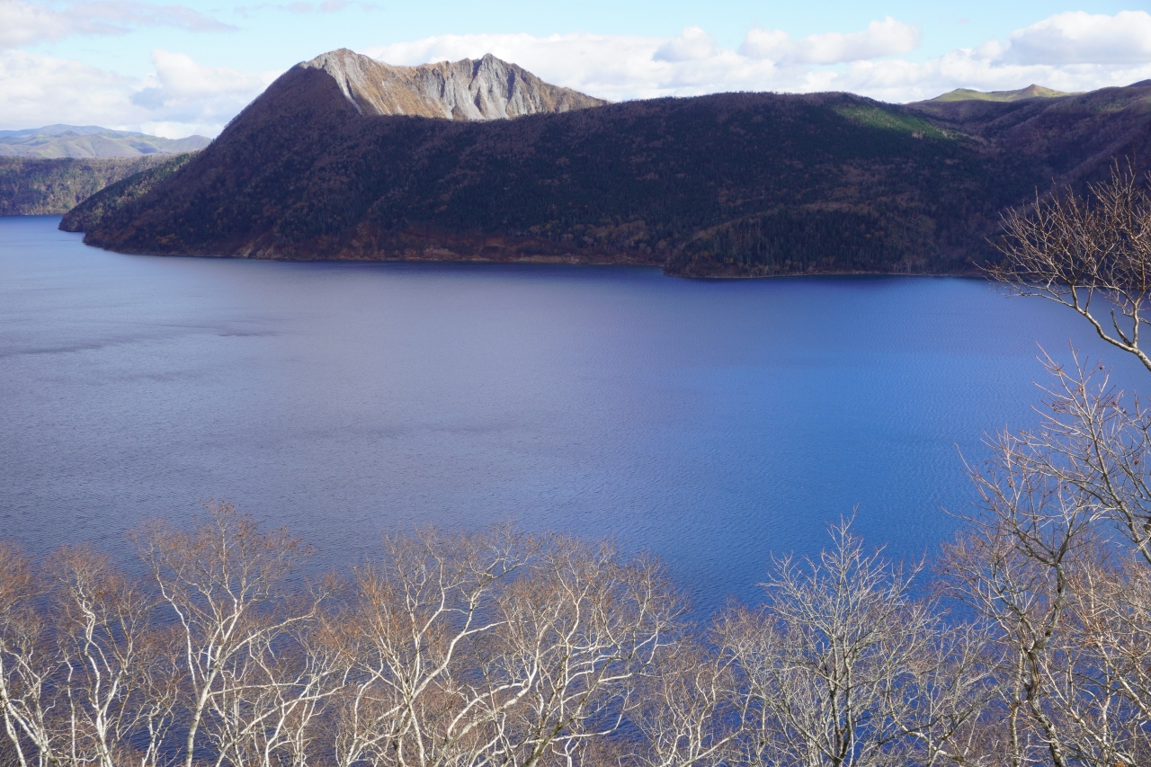 もう何年も前ですが、前回の摩周湖は霧の中だったので、今回はリベンジ。少し曇っていましたが、第一展望台から青ざめたような美しい湖面が見渡せました。この青は空の色も映しているんでしょうが、やっぱり独特ですね。周囲の白樺の紅葉とのコントラストもいいと思いました。