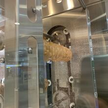 店内では、くるくるまわっている〈バームクーヘン〉を見ることができます