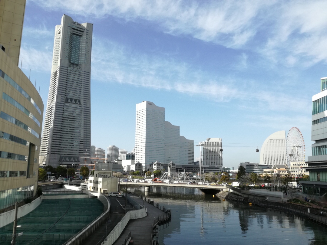 さらに、橋の途中から見えるみなとみらいの風景も、なかなか良い感じです。