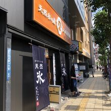 近鉄・大阪メトロ日本橋駅から堺筋方面のところにある季節限定のかき氷のお店。八ヶ岳の天然水のかき氷が食べられる。シロップにも拘っており、生イチゴ、生オレンジ、キウイ、生メロンなど、生のフルーツを使ったものがメイン。また、ティラミスやコーヒーなども。100円で、フロマージュかバニラアイスのトッピングが楽しめる。1100円〜と少し高めですが、天然水の氷は滑らか、こだわりのシロップも美味。暑い大阪にはぴったりのお店。