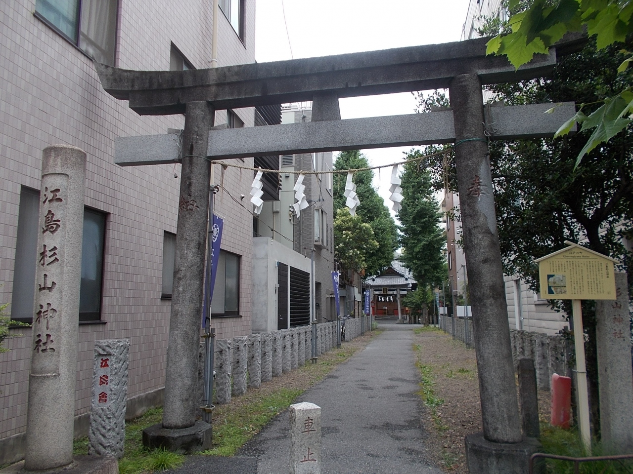 この江島杉山神社は17世紀後半に多くの人に指圧や針で人々を助けた杉山検校の屋敷にたてられたのです。杉山検校が若いころに修行をしたときに夢のお告げがありそこで鎌倉の弁財天を分霊し祀ったのです。今もその姿をのこしています。境内には杉山検校の碑や杉山和一記念館などがあります。