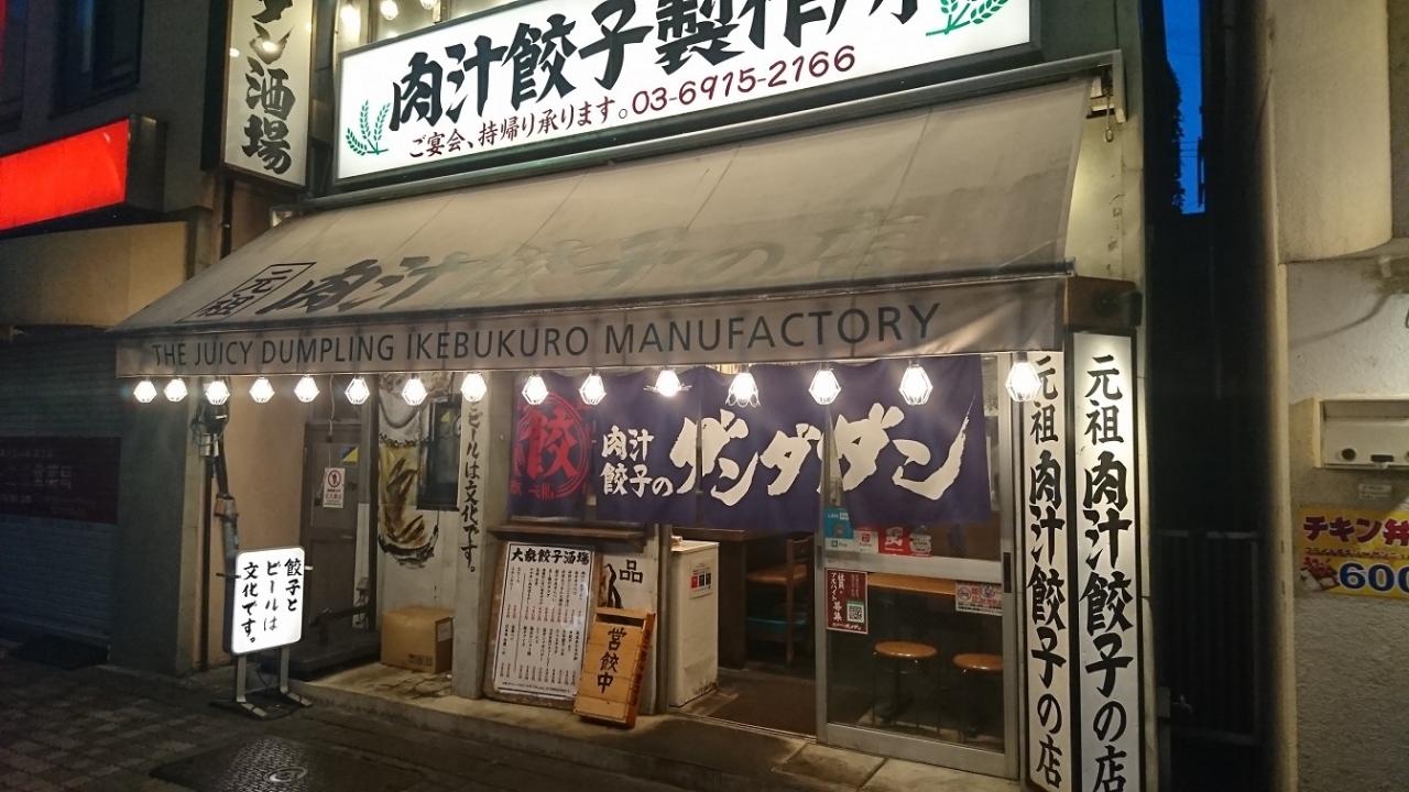 池袋駅西口から徒歩5~6分程度、豊島区池袋2丁目にある餃子専門店です。夕食で肉汁餃子6個と鶏出汁にゅう麵をいただきました。別のダンダダンのお店で濃厚坦々つけ麵をいただいたことがありましたが、こちらのお店のメニューにはのってなく、仕方なく鶏出汁にゅう麵を注文。あたたかい素麺の上に鶏肉とねぎがのり、スープは鶏出汁のスープ。予想していたより優しい味で美味しかったです。