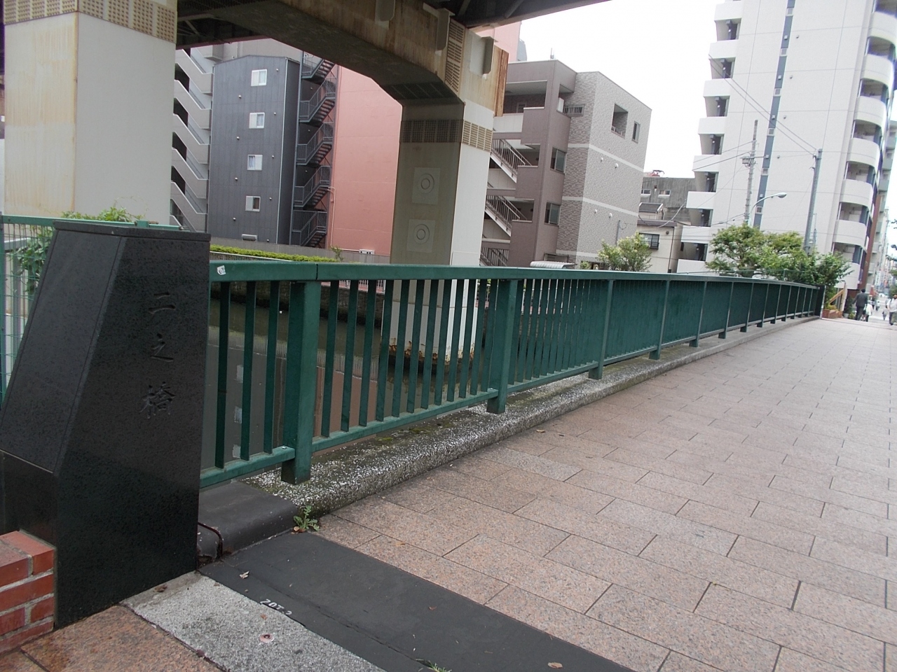 この二之橋は隅田川から分かれた堅川にかかる橋の一つです。堅川は江戸時代掘削によってつくられた川です。この橋は今は清洲通りが通っています。この橋の北側には小林一茶の居住地の説明板は軍鶏なべ屋「五鉄」の説明板があります。江戸時代から歴史を刻んでいたのです。
