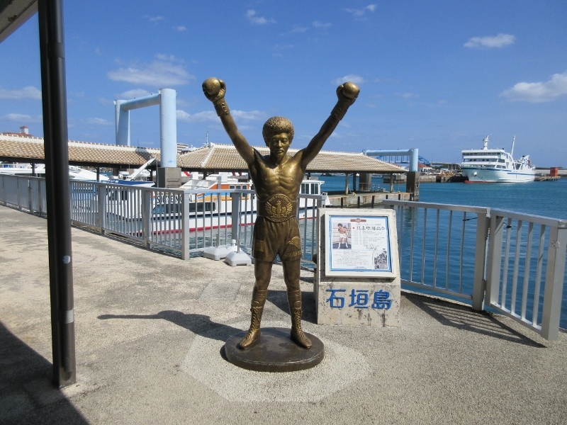 具志堅用高さんが沖縄出身とは知っていましたが、行く前に石垣島の離島ターミナルに金色の像があることを知って石垣出身と知りました。生きているうちにこんな立派な像が建つのだから、石垣島の誇りなのだと思いました。思ったより小さかったです。