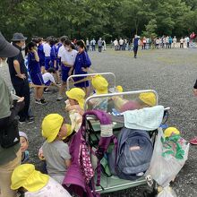 巾着田の西側の鹿台橋の方の巾着田管理事務所付近で聖火ランナーを引き継ぎ、