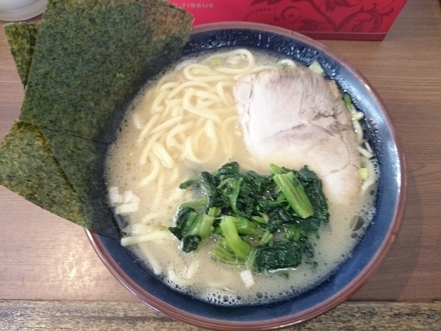 浅草駅から徒歩3分程度、台東区花川戸1丁目にある横浜家系のラーメン屋さんです。ランチで濃厚豚骨醤油ラーメンをいただきました。具は海苔3枚、ホウレンソウ、チャーシューで、極太麺とよく煮込んである濃厚な豚骨醤油スープの一品です。スープには豚骨のコクを感じ、美味しいスープに仕上がっている印象です。
