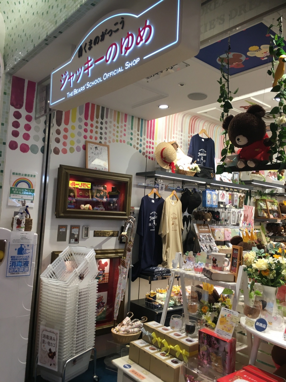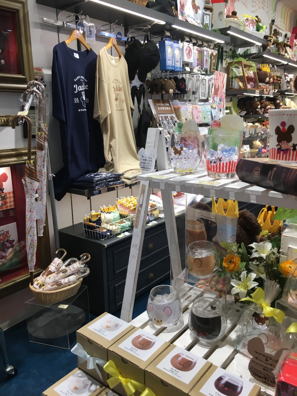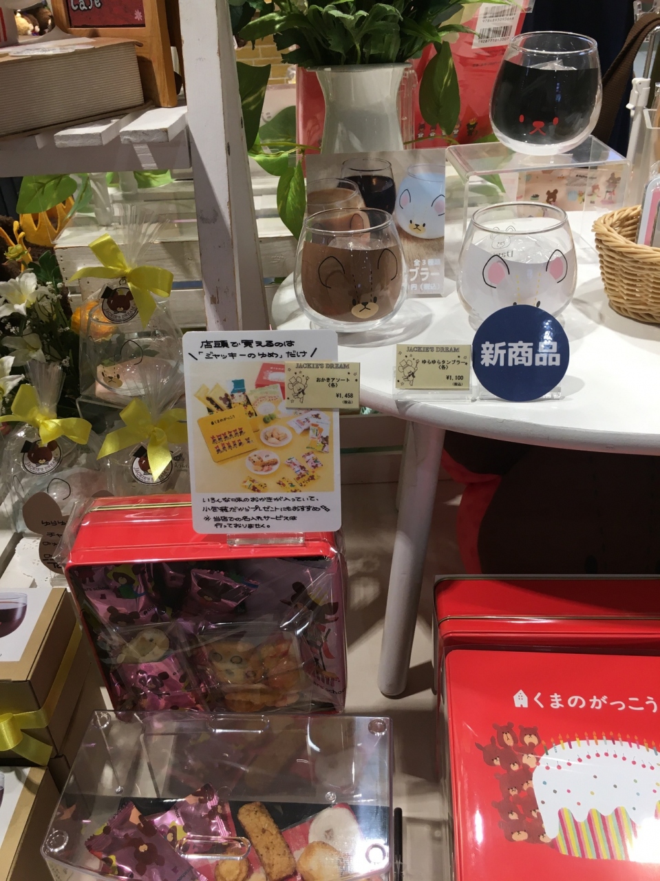 東京駅地下の通路沿いの人通りが多い角にある店で、店内は狭く商品がぎっしりと置いてありました。ロゴマークが可愛らしくTシャツが目につきました。グラス、スマートフォンケース、携帯扇風機等たくさんの品がありました。