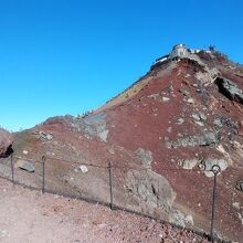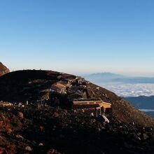 翌朝、天気に恵まれ早朝5時前のご来光を堪能。また、影富士も見ることができた。お鉢を一周し、最高峰の剣ヶ峰を訪れた後、御殿場コースから下山。