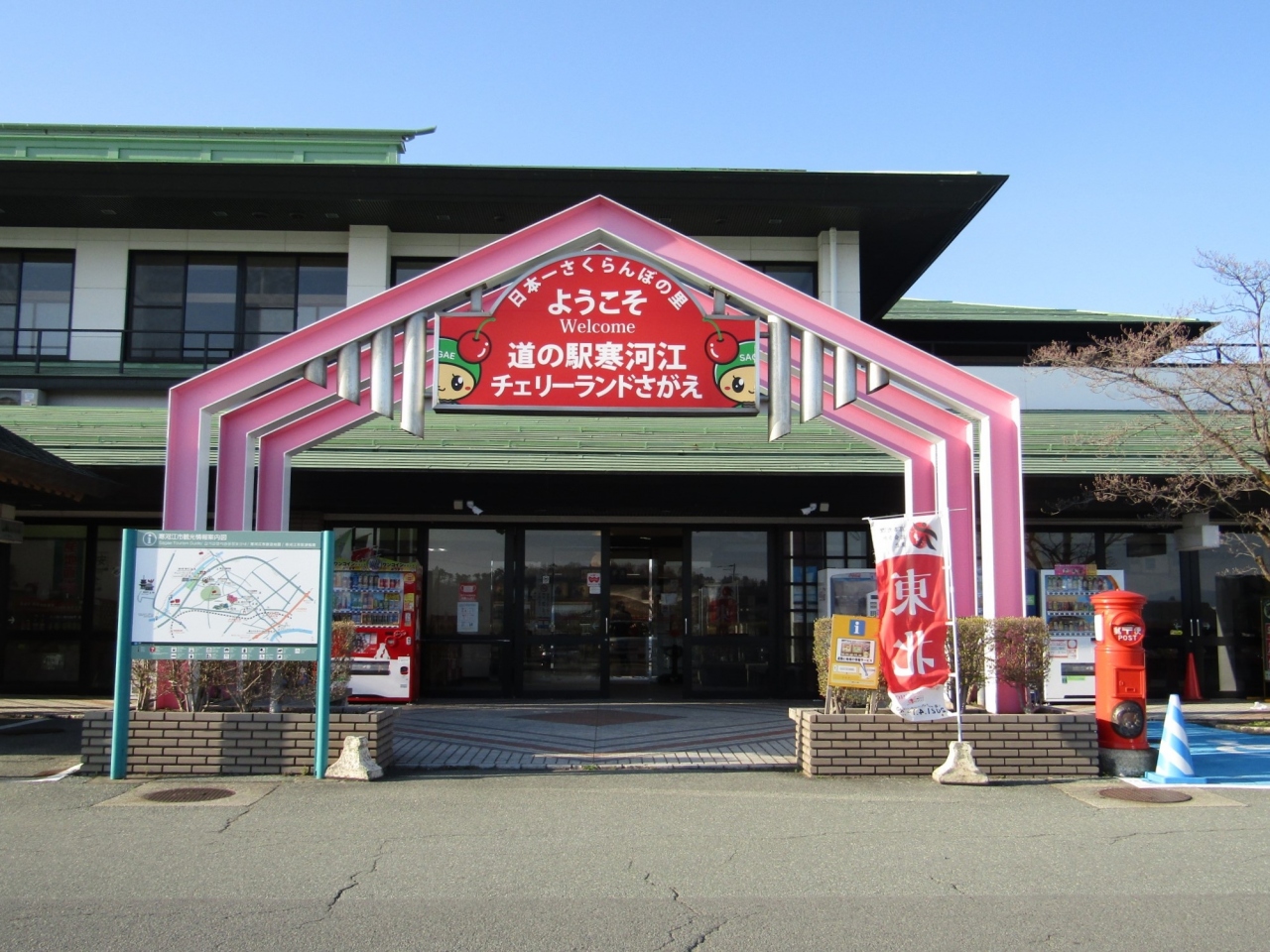 施設は国道沿いに横長に並んでいて、お土産品等物販施設とレストラン、農産物直売所、観光案内所がある「チェリーランドさがえ」を中心に、手作りアイスのさくらんぼ会館、トルコ館、臨川亭のほか、スポーツ広場の河川敷公園などの施設と広い駐車場が整備されています。