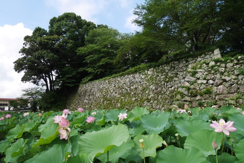 城跡としてはぼちぼちの規模・見応えかなと城素人としては思うのですが…このお城はなんと!お堀にハスの花が咲きます。観光地としてそこまで有名でないだけあって、じっくりと見ることができました。お城のお堀のものもいいですが、城跡の敷地内に2つ池があり、そこでもぽつ、ぽつ…と咲くハスを見ることができました。おすすめです。