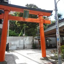 文明年間(1469-1487)、足利9代将軍義尚により創建。忍が岡と向が岡の境に鎮座しているので境稲荷と称されたもの。かつての茅町の鎮守とありました。赤い鳥居から入って、通りの沿って奥に向かう境内です。