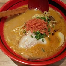 えびそば一幻のえびみそを食べてきました。えびが濃厚なのにさらに味噌の濃厚さが相まってなんともいえないコクがあります。
