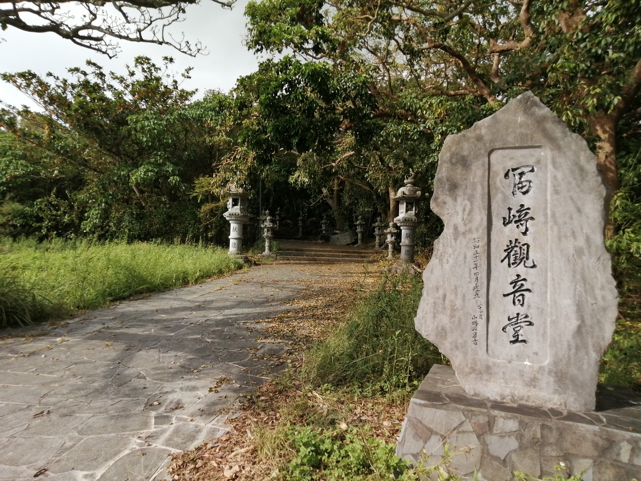 石垣市街から行くと観音崎灯台の500mほど手前。道路沿いに入口があります(駐車場あり)。階段を上がること約100m、お堂が見えてきます。内部には3体の観音様が祀られているようですが、よく確認できず。建物も地味で決して見応えがあるとは言えません。