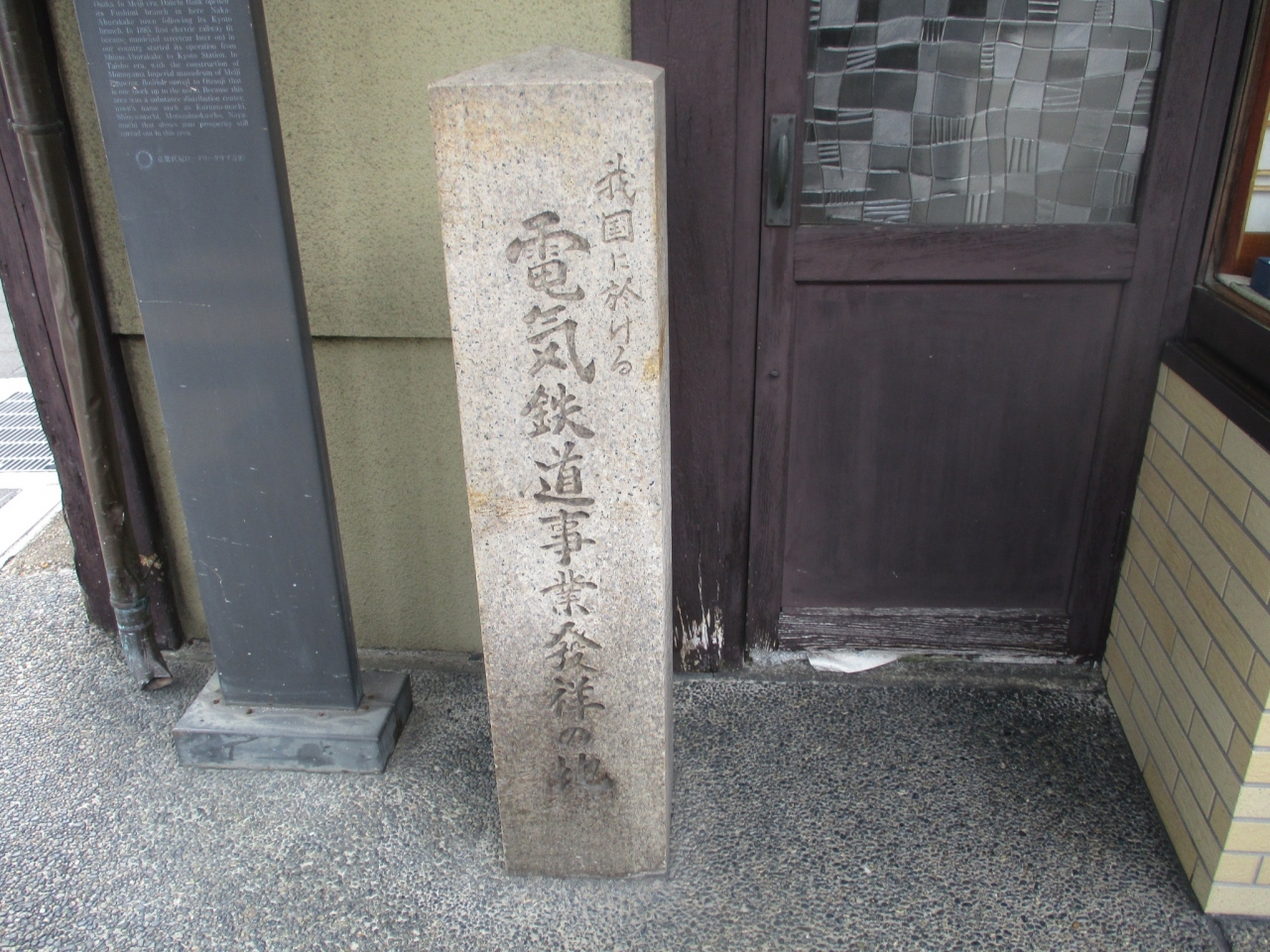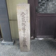 伏見の油掛通りに記念碑がぽつりと立っています。日本最初の電気鉄道である京都電気鉄道株式会社は明治28(1895)年に開業しました。今のJR京都駅付近から終点の下油掛停車場があったこの碑までの約6kmを走っていたそうです。かつてはかなりの賑わいがあった場所だそうです。今は面影は残っていません。