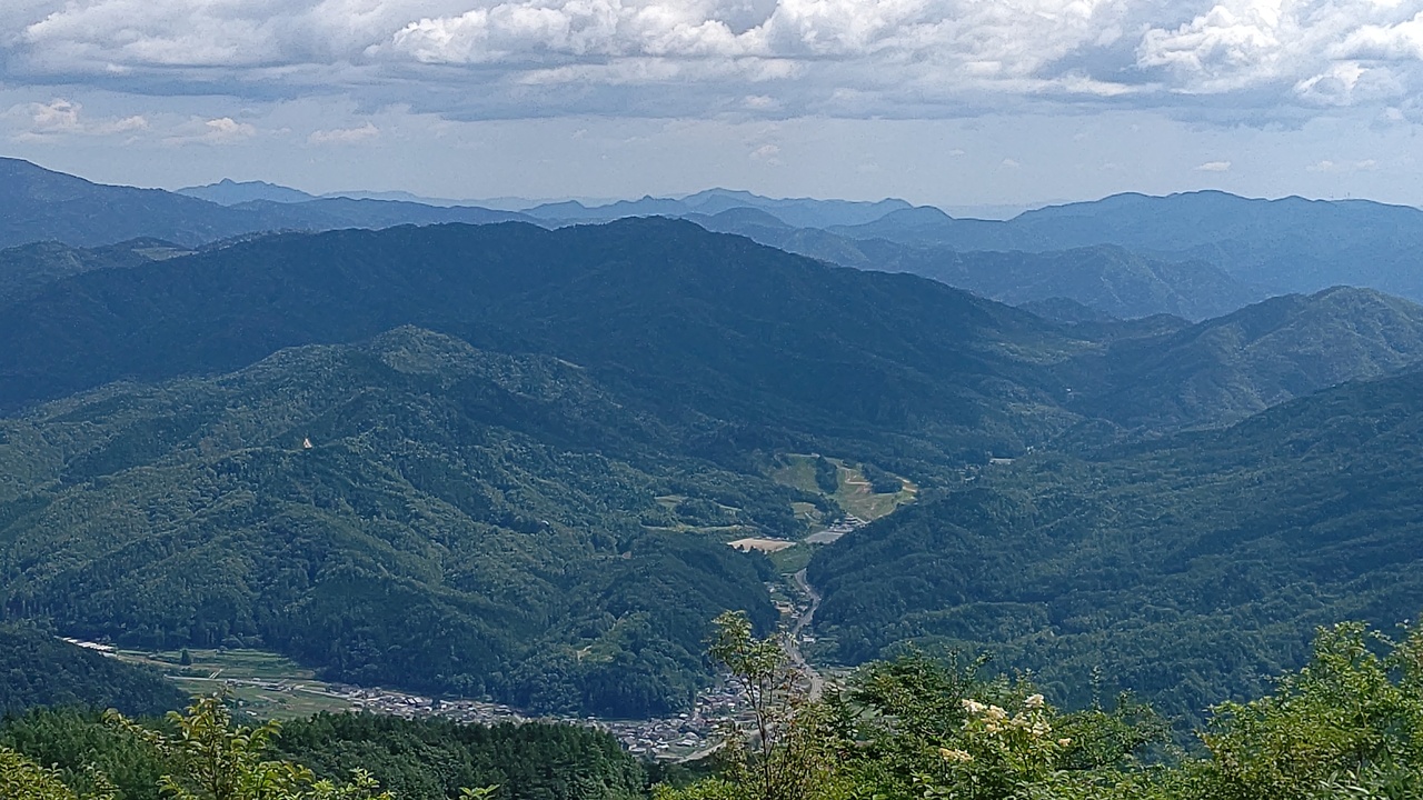 標高1573メートルの山。車で山頂まで行けるのがうれしい点です。道の駅平谷から国道153号を北ヘ1キロちょっとしたら抜ける道があります。そこをひたすら一本道を進みます。訪問は8月でしたが、頂上は風が涼しく感じました。駐車場は5台ほど。そこから100メートルほど登ると、展望台と三角点があります。眺望は素晴らしいです。スマホもつながりました。夜は星がきれいだそうです。