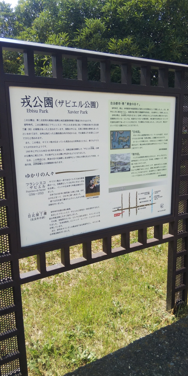 ザビエル公園は堺市堺区にある公園です。夏の暑い日に行きましたので、セミが鳴きまくっていて、ずいぶんうるさかったです。さすがに暑すぎて、こどもたちも少なめでした。最寄りの駅は南海電鉄本線の堺駅だと思います。阪堺線の駅はすぐそばにありますが、スピードが遅いので、ちょっと不便です。