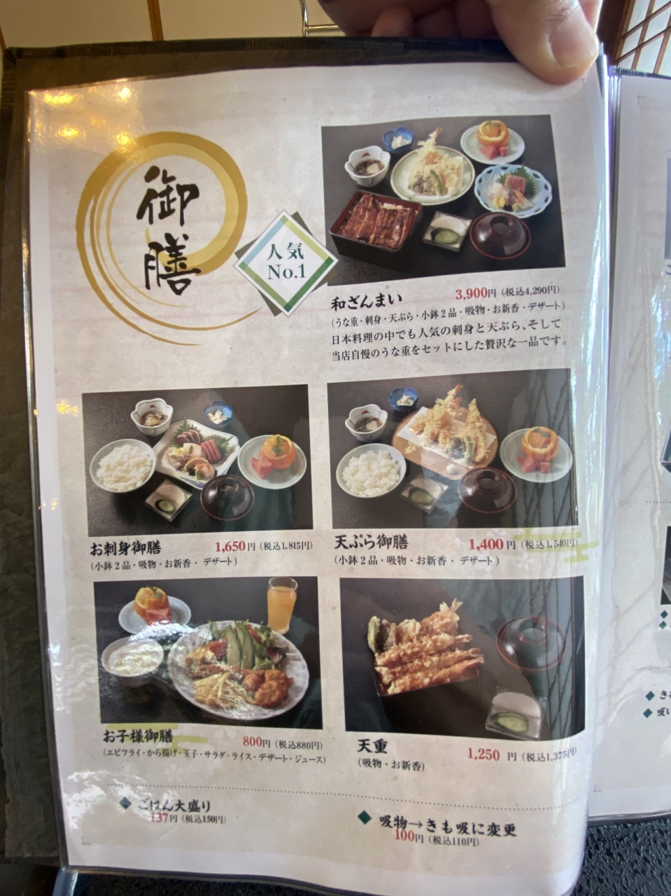 別館は、天ぷらやお刺身が付いた御前があるので2回目以降やうな重だけでは物足りない方はこちらが良いかもしれません。