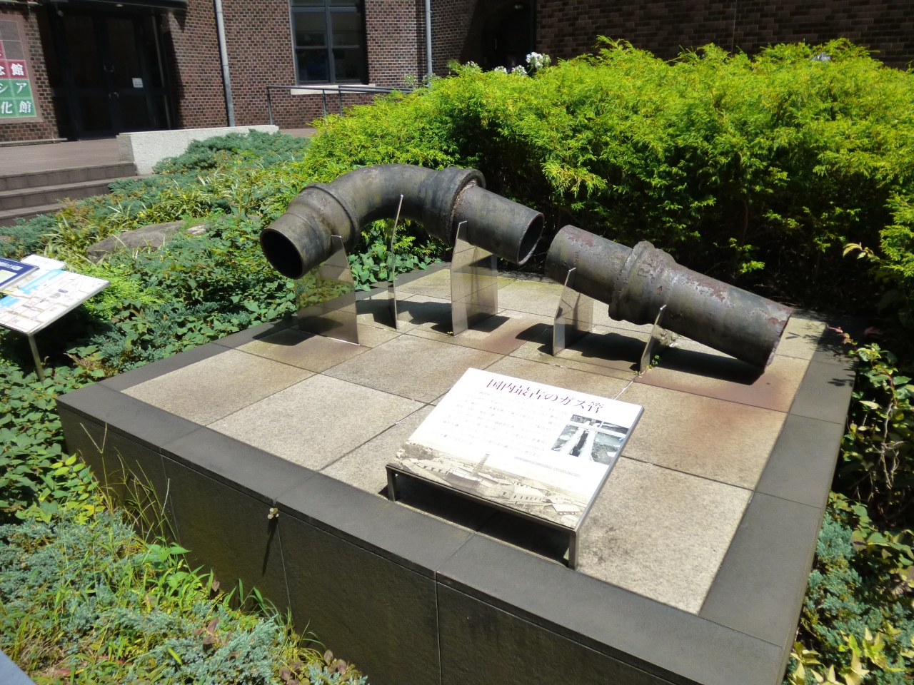 「国内最古のガス管」は、横浜都市発展記念館のエントランス脇に屋外展示として配置され