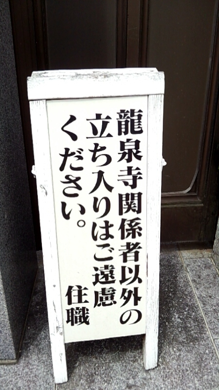 境内に入って、中の様子をみたかったのですが、門のところに、「龍泉寺の関係者以外の方の立ち入りはご遠慮ください」という掲示がありました。