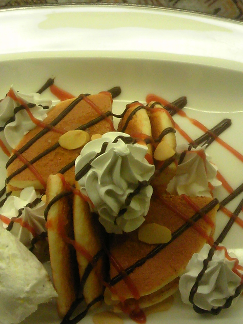 パスタやオムライスやパンケーキなど喫茶店のような雰囲気の店です。パンケーキセットを注文しましたが、チョコレートや生クリームなどがトッピングされていていろいろな味を楽しめる工夫がされていました。高級感ある店内です。