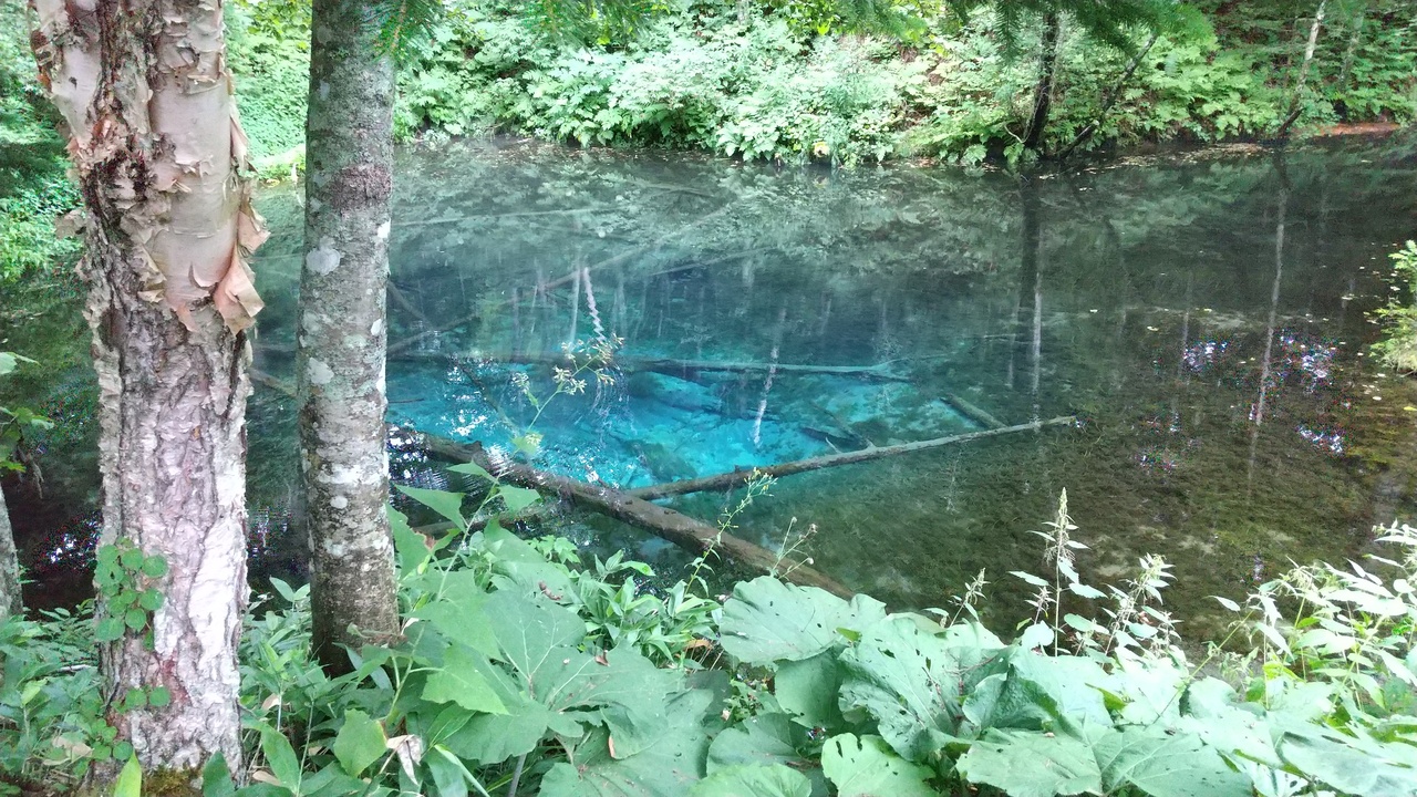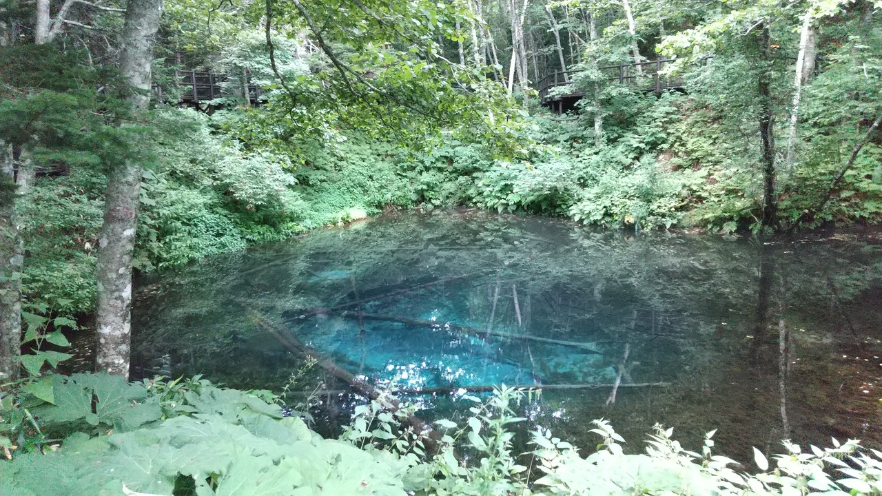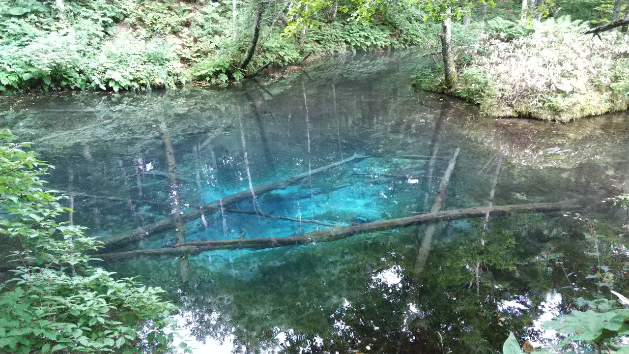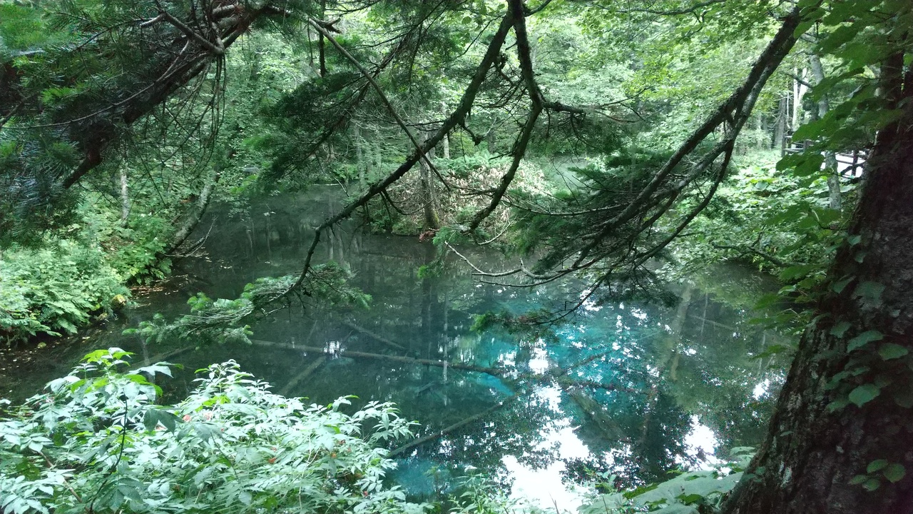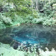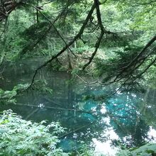 夕方の曇り空でしたが透明度の高い青々とした池は美しく感動。移動しながらいろいろな角度から見学しました。