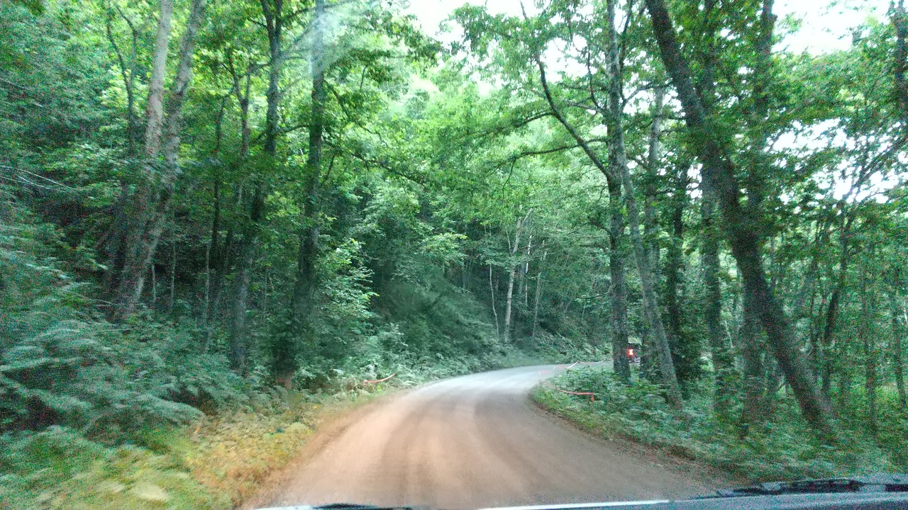 思っていたより道幅も広くすれ違いも問題なくできますが、砂利道なので砂埃で霞むほど。