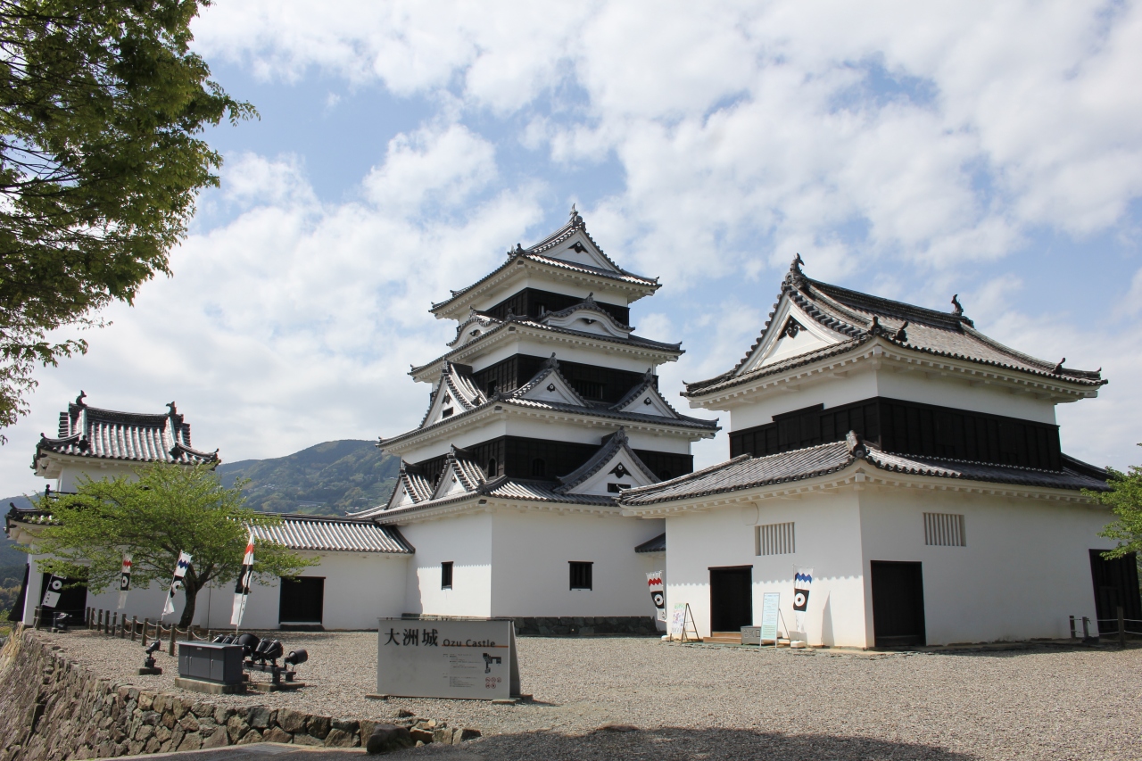 伊予大洲駅から歩いて20分ほどの城です。本丸跡には4重4階の天守閣が2004年に復元されています。予讃線の車窓からも眺めることができ、肱川越しに望む天守閣の景観は美しくお勧めです。4つの櫓は重要文化財になっています。