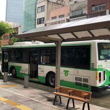 神戸市内を走る路線バスです。車体は緑色です。神戸は坂が多いので、市バスは便利です。野崎通を走る2系統などに乗ると、眼下に広がる神戸市街地を眺めることができます。市街地エリアは、210円の均一運賃なので気軽に乗車できます。