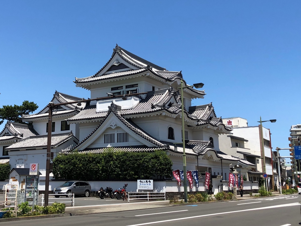 小田原駅から歩いて15分、市街を走る国道1号線沿いの小田原城のお堀の近くにある、三層の天守閣のような建物です。ういろうや薬などが売られている店舗に併設して外郎博物館があり、ういろうに関するモノや、小田原の商家ゆかりの品々が展示されています。
