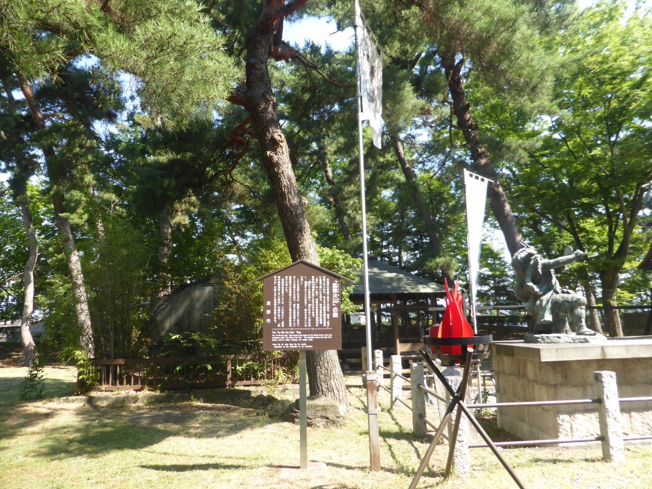 上杉謙信と武田信玄が戦った川中島の合戦の史跡です。広々とした公園の一角にあります。古戦場には、一騎打ちの像やその近くには八幡神社があります。その他、三太刀七太刀之跡之碑や首塚などもあります。ひとつひとつ説明版が設置されているので色々と勉強になりました。奥には長野市立博物館があるので時間に余裕があれば見学されるといいでしょう。