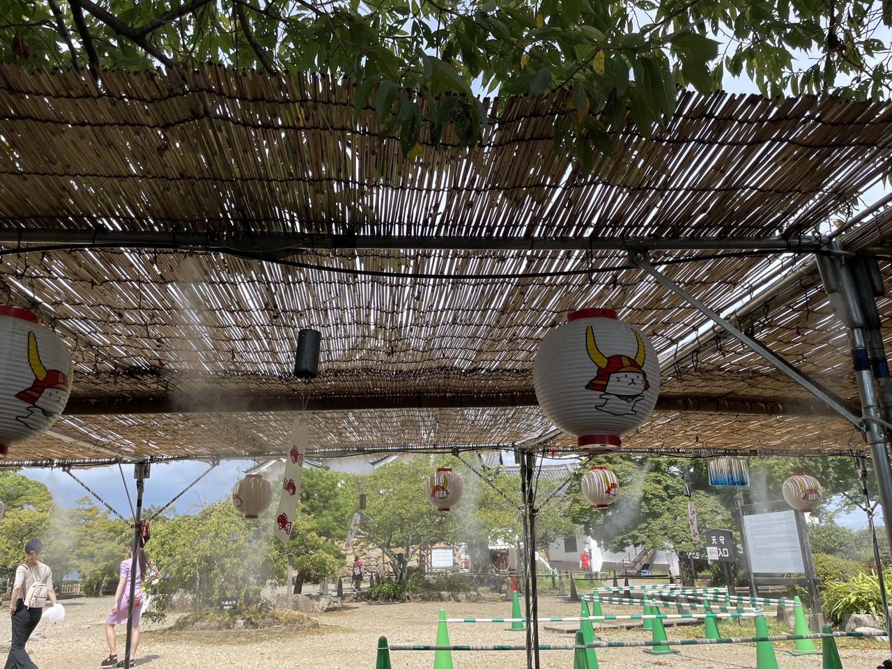 天守の前にはミストシャワーがあってしばし涼める場所もありますが暑かったです。