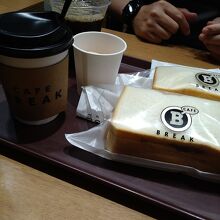 サンドイッチのモーニングセットにしましたが二人で1000円もしてないはず。